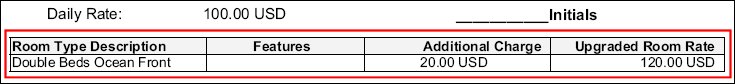 When Upsell conditions are met for a reservation, a list of the room types that are associated with the reservation's rate code and that would constitute an upsell are printed on Registration Cards and Confirmation Letters.