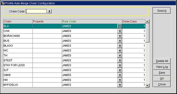 View Log. Select to view the merge statistics for the highlighted, or for all, of the chain codes that are displayed. See Profile Auto Merge Statistics for details.