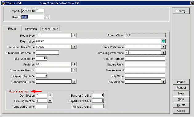 Housekeeping Stayover Credits/Departure Credits. These fields display only when the Rooms Management> Housekeeping Credits application setting value is equal to Rooms. In these fields you can enter credits or time allotments corresponding to the amount of cleaning time necessary to prepare the room. Because Departure rooms may take longer to clean than Stayover rooms, Housekeeping departments sometimes use this feature to more equitably distribute assignments to attendants each day.