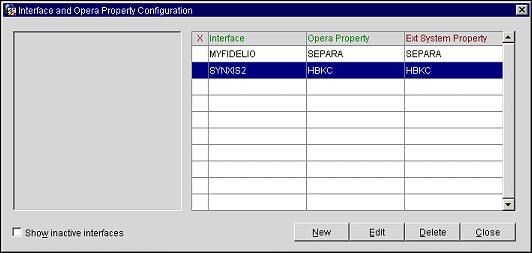 To get from one OXI to the another in a multi-property setup, without logging in and out per interface type, Select Switch Interface to see all of the configured interfaces for each OPERA property. In most cases only one interface ID will be displayed for one or more properties.