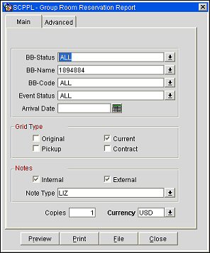 Group Rooms Control Sheet (SAMPLE_GRMRES_SALES_STD.REP with SAMPLE_GRMRES_SALES_STD.FMX)
