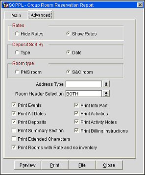 Deposit Sort By. Select printing deposit information either by type (rooms, catering or all) or by date. If type is selected a sub-total will print after each type.