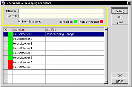 All. Selects all of the housekeeping attendants in the Search Results Grid.