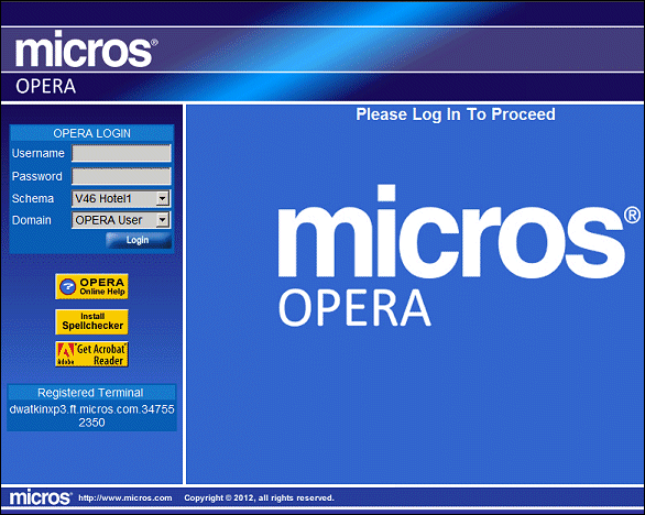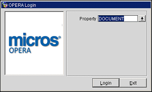 Provide the following information and select the Login button to log in to OPERA. Your user name and password must be entered before access to OPERA is permitted.