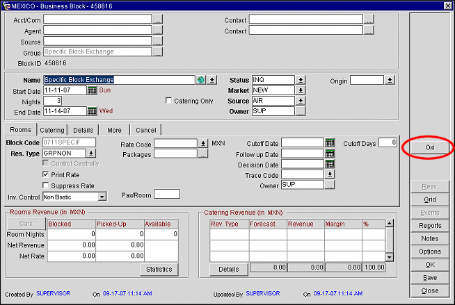 Note: This will not be marked on the OPERA Business Blocks screen; the block is automatically exchangeable by the presence of an external reference number.