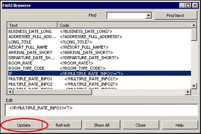 Or, you may also view and/or edit the condition of an IF/ENDIF statement via the Field Browser (Tools>Field Browser) then selecting the Update button to apply your modifications.