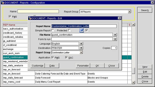 Note: If the Customize option is not available, then OPERA is unable to locate the Oracle BI Publisher software on the workstation. This will need to be installed using the install media available from your local Oracle regional office.
