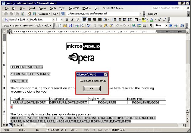 Note: Although this tool utilizes Microsoft Word for customization, not all elements can be used on the report. An RTF template is a document which describes how data will be presented. It does not contain any knowledge of how to extract data, only tags containing field names. Macros cannot be used, as the report is stored in *.RTF format. Additionally, any non-standard fonts must be loaded on the OPERA application server for the report to recognize and display them when generating from OPERA.