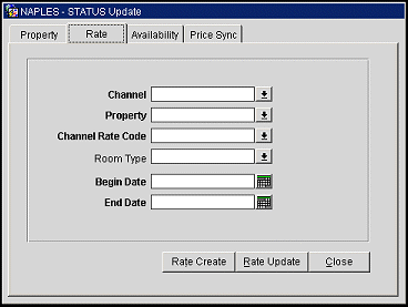 Use the Status Update feature to ensure your GDS/ADS hosts receive configuration changes made in your channels such as  property update, rate update, and availability messages. You can also specify the begin and end dates for rate code availability. Additionally, you can use the Price Sync tab to synchronize rate prices in the internal table system for regional availability functionality.