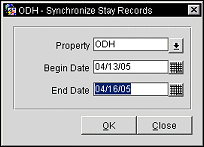 To run the stay records synchronization utility, provide the following information and select the OK button.