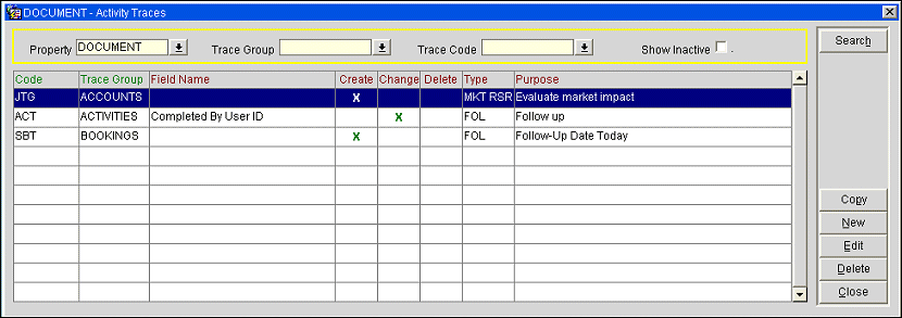 To copy an existing trace and use it as a "template" for a new activity trace, highlight your choice on the Activity Traces screen and select the Copy button. A duplicate activity trace will appear in the Activity Traces list, which you may then edit to modify as necessary.