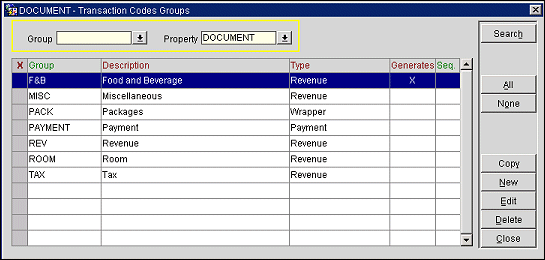 Transaction Codes Groups