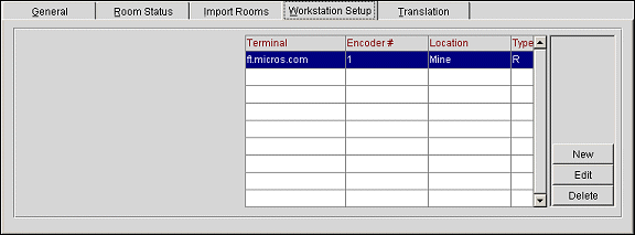 To set up a new workstation, place your cursor on a blank line in the grid, then select the New button. The Workstation Setup - New screen appears.