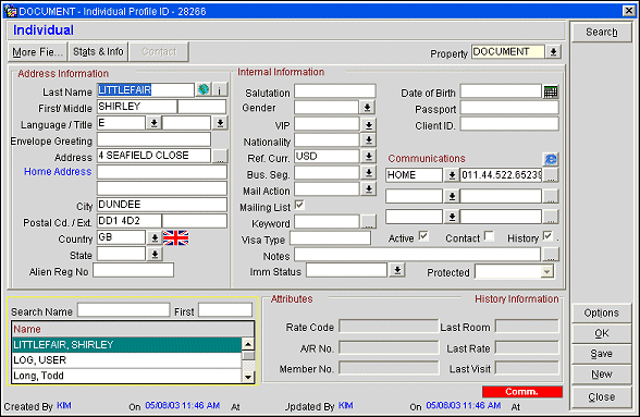The Quick Address finder is activated when the Country field is filled with a code that has been configured within OPERA.