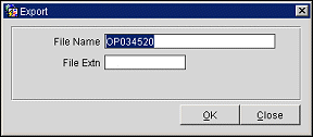 File Generated . Displays the name of the export file that was generated.