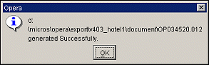 Generate File. Another Export screen displays. Enter the Export File Name. You do not need to enter a three- digit file extension, as Sales & Catering will not require one.