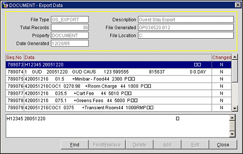 Edit. The Edit screen for the Export Data is the same for viewing the data records, except that it allows you to perform editing functions. You can perform Find and Replace functions on the data records, delete, add, and edit the records in the export file before it is exported to Sales & Catering.