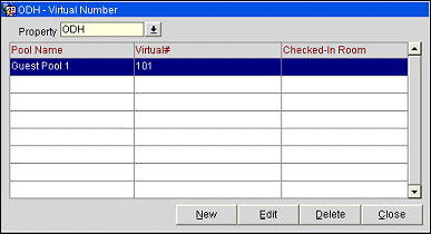 Property. Select the down arrow to choose the property to see virtual number assignments for the current profile. The default is your login property. (This feature is available if the OPP MHOT PMS Multi-property add-on license is active.)