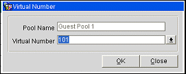 Select the New button on the Virtual Number screen to assign a virtual number to the current profile. The Pool Name screen appears. Select the virtual number pool that includes the virtual number you wish to assign to this profile. Select OK. The Virtual Number - New screen appears. The pool you chose is shown in the Pool Name field.