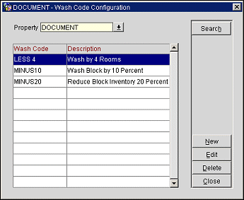 Search. Use the Search button along with the Property list of values to search for wash codes configured for your choice of properties.