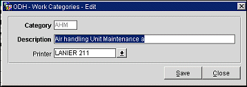 Printer. Select a printer to be used with the work category. By attaching a printer to a work category, a task that is generated will print to the correct printer for that specific department. This is for purposes of employees working multiple work categories during their shift.